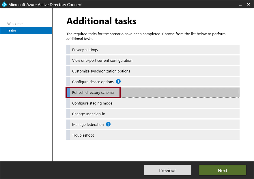 AADC를 실행해주세요 그리고 Refresh Directory Schema를 클릭해 진행해줍니다