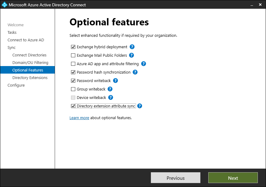 Directory Extension Attribute Sync를 클릭해주세요 새로운 Attribute를 Sync하기 위한 옵션이에요