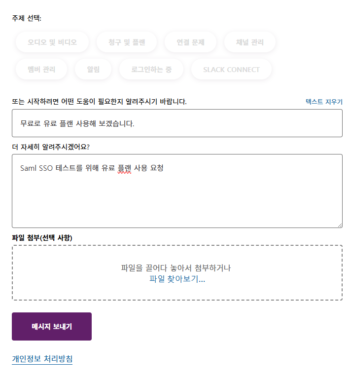 SSO기능을 지원하는 Slack 구독을 신청하는 방법
